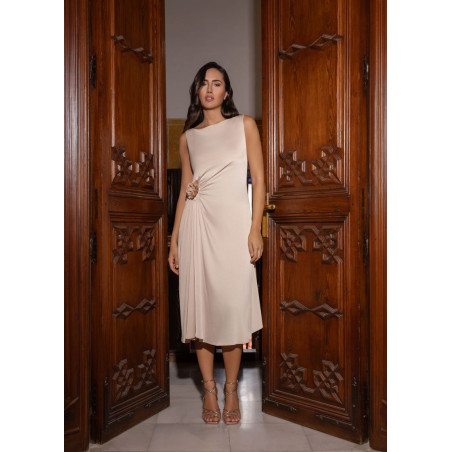 Vestido midi liso bambula recogido