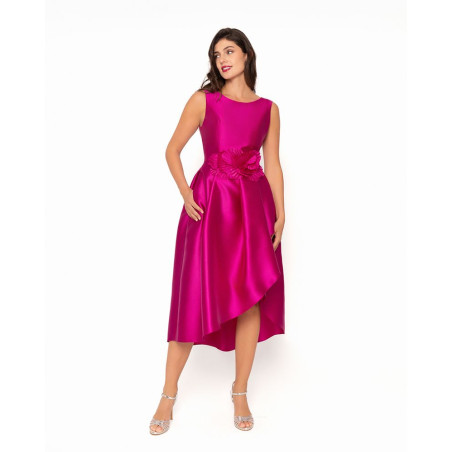 Vestido midi tafetan asimétrico