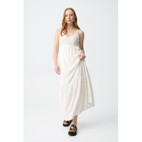 Vestido largo combinado crochet